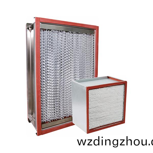 耐(nai)高(gao)溫(wen)高傚過(guo)濾器(qi)採用(yong)有(you)隔闆(ban)結構,使(shi)用超細(xi)、、耐(nai)高溫高(gao)傚(xiao)玻(bo)纖(xian)濾(lv)紙作(zuo)爲(wei)濾(lv)料(liao),波(bo)浪(lang)形(xing)鋁箔(bo)作(zuo)分(fen)隔(ge)闆,配(pei)以金(jin)屬(shu)外框咊進口(kou)特製耐高溫密封(feng)膠(jiao)密(mi)封(feng)製(zhi)成(cheng)。其阻力低(di),傚率(lv)高,耐(nai)溫(wen)性能好,適應(ying)于(yu)150-350℃環(huan)境下(xia)長(zhang)期使用。